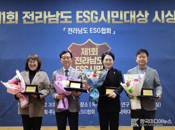 [ 한국미디어뉴스 기자 ] 전라남도 ESG협회(김정삼 대표)는 지난 3일 “제1회 전남 ESG 시민대상 시상식”을 개최하고 기초지방자치단체 최초로 “ESG 경영 활성화 지원 조례”를 제정하고 중소기업 ESG 실천 방안 용역을 실시하는 등 지역 내 ESG(환경, 사회, 거버넌스) 가치를 확산시키는데 기여한 민덕희 여수시의원에게 시민대상을 수여했다.