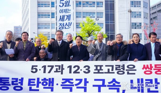 연석회의 지도자들은 이날 5‧18민주광장에서 기자회견을 열어 “12·3 포고령은 계엄 해제 요구권을 가진 국회 활동까지 금지했다는 점에서 더 위헌적이다.