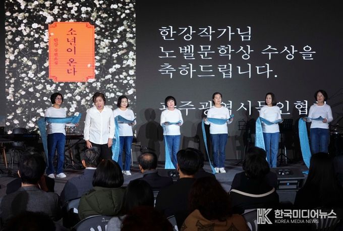 광주광역시는 한강 작가의 노벨상 시상식에 맞춰 10일 밤 8시부터 11일 새벽 1시까지 ‘한강 작가 노벨문학상 수상 기념 시민 축하행사’를 시청 시민홀에서 개최했다.