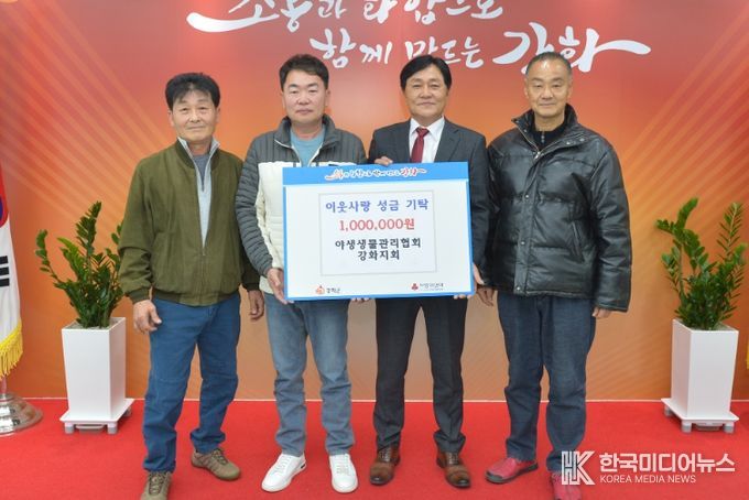 [ 한국미디어뉴스 기자 ] 강화군은 지난 16일 야생생물관리협회 강화지회(지회장 이진우)에서 이웃사랑 성금 100만원을 기탁했다고 밝혔다.
