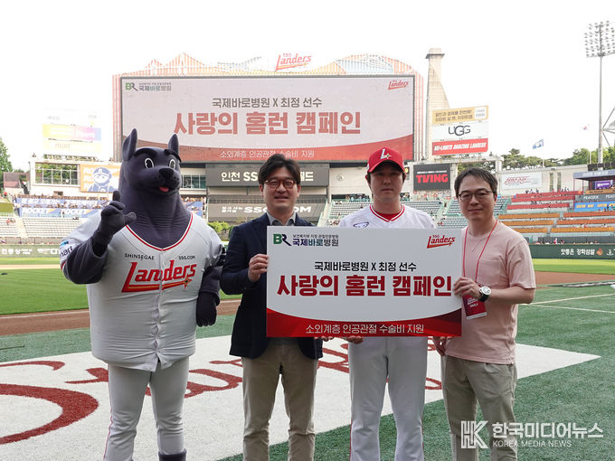 [ 한국미디어뉴스 이원영 기자 ] 보건복지부 관절전문 국제바로병원(대표원장 이정준)은 29일 SSG랜더스필드에서 SSG 최정선수와 2025 사랑의 홈런캠페인 협약식을 가졌다고 30일 밝혔다.