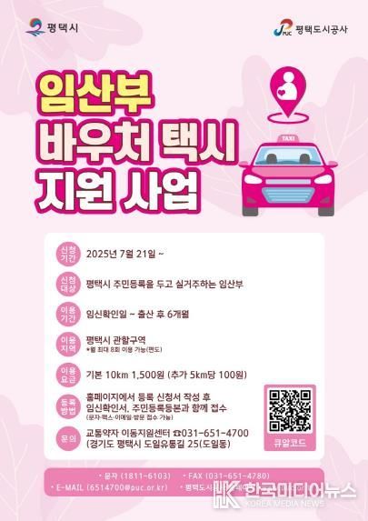 [ 한국미디어뉴스 이보영 기자 ] 평택시는 오는 21일부터 ‘임산부 대상 바우처 택시’운행을 시작한다고 밝혔다.