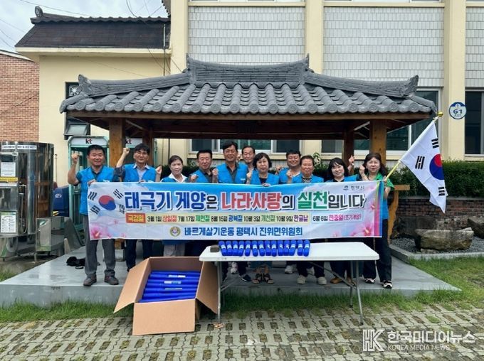 최남일 진위면장은 “무더운 날씨에도 태극기 달기 운동에 관심을 가지고 실천하신 바르게살기위원회에 감사드린다”라며 “진위면 주민들이 나라를 사랑하는 마음으로 다가오는 제헌절의 의미를 다시 한번 마음에 새길 수 있기를 바란다”라고 전했다.