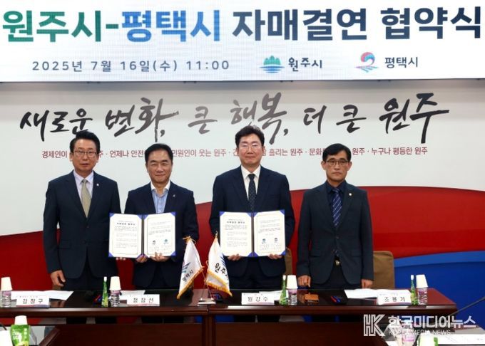 [ 한국미디어뉴스 이보영 기자 ] 평택시의회는 16일, 강원도 원주시를 방문하여 원주시청에서 열린 ‘평택시·원주시 자매결연 협약식’에 참석했다.