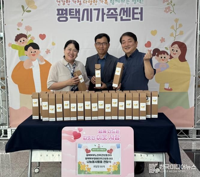 [ 한국미디어뉴스 이보영 기자 ] 평택시가족센터는 지난 15일, 평택북부노인주간보호센터 및 평택북부장애인주간보호센터에 모두가족봉사단이 직접 만든 ‘망고백향과청’50병을 전달하는 나눔 봉사 물품 전달식을 진행했다.