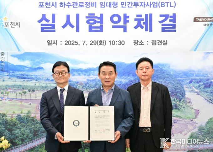 [ 한국미디어뉴스 김서안 기자 ] 포천시는 지난 29일 ‘포천시 하수관로정비 임대형 민간투자사업(BTL)’에 대한 실시협약을 체결했다.