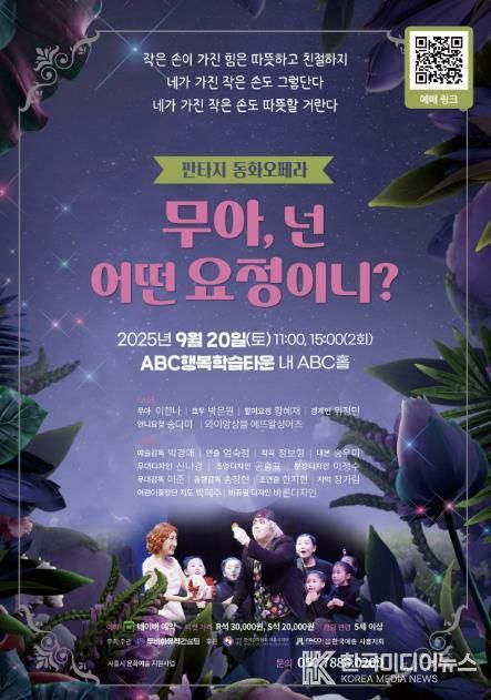 [ 한국미디어뉴스 이보영 기자 ] 시흥시가 ‘2025년 지역문화예술 활성화’ 사업의 하나로 지원하고 두비아뮤직컨설팅에서 주최ㆍ주관하는 판타지 동화 오페라 ‘무아, 넌 어떤 요정이니?’가 오는 9월 20일 오전 11시와 오후 3시, 총 2회에 걸쳐 시흥ABC행복학습타운 ABC홀에서 열린다.