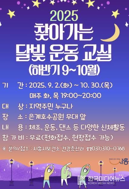 [ 한국미디어뉴스 이보영 기자 ] 시흥시는 시민들의 신체활동 증진과 건강한 생활습관 형성을 위해 운영 중인 ‘찾아가는 달빛 운동교실’을 오는 9월부터 하반기 일정으로 다시 시작한다.