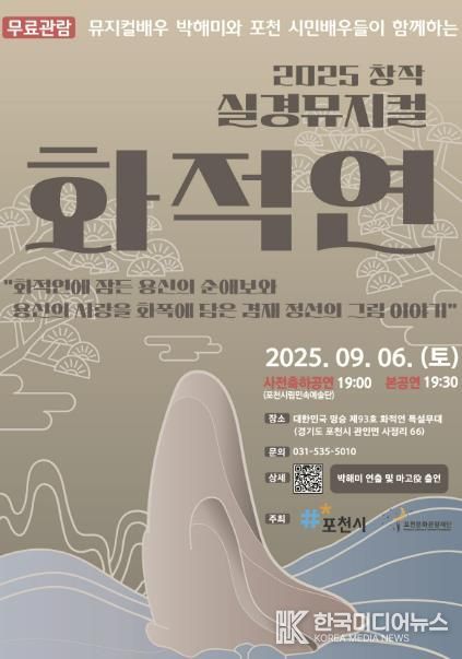 [ 한국미디어뉴스 김서안 기자 ] 포천시 포천문화관광재단는 오는 9월 6일 포천시 관인면 사정리 66에 위치한 화적연 특설무대에서 창작 실경 뮤지컬 ‘화적연’을 개최한다.