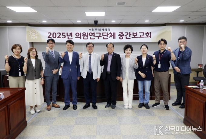 [ 한국미디어뉴스 이보영 기자 ] 수원특례시의회 의원연구단체인 ‘수원특례시 대형 점포와 소규모 점포의 균형 관리를 통한 유통산업의 상생으로 지역경제의 안정적 발전을 위한 기초 연구회’가 8월 18일 문화체육교육위원회 회의실에서 연구활동 중간보고회를 열었다.