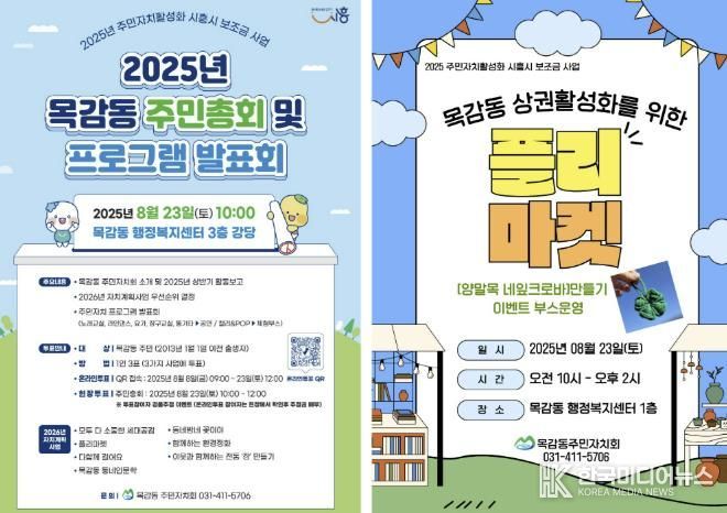 [ 한국미디어뉴스 이보영 기자 ] 시흥시 목감동 주민자치회는 오는 8월 23일 오전 10시부터 목감동 행정복지센터 3층 강당에서 ‘2025년 목감동 주민총회’를 연다.