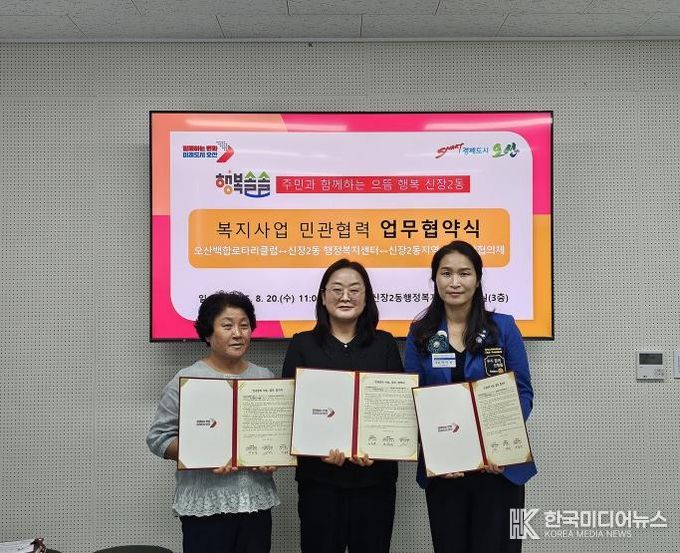 [ 한국미디어뉴스 이보영 기자 ] 오산시 신장2동 행정복지센터와 신장2동지역사회보장협의체는 지난 20일, 오산백합로타리클럽과 함께 지역 복지사각지대 해소를 위한 업무협약을 체결했다고 밝혔다.