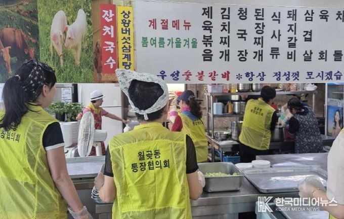 [ 한국미디어뉴스 이보영 기자 ] 시흥시 월곶동은 지난 8월 26일 월곶동 내 한 음식점에서 무더위를 식혀줄 ‘콩국수 무료 급식 나눔 행사’를 열었다. 연일 이어진 무더위 속에서도 이날 현장에는 어르신들의 발걸음이 이어지며 정겨운 웃음소리와 대화로 가득했다.