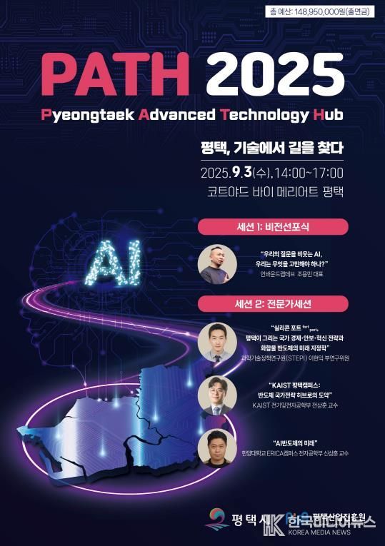 [ 한국미디어뉴스 이보영 기자 ] 평택시는 오늘 9월 3일 코트야드 바이 메리어트 평택에서 열리는 ‘PATH 2025’(Pyeongtaek Advanced Technology Hub)를 통해 인공지능(AI) 비전을 공식 선포한다고 밝혔다.