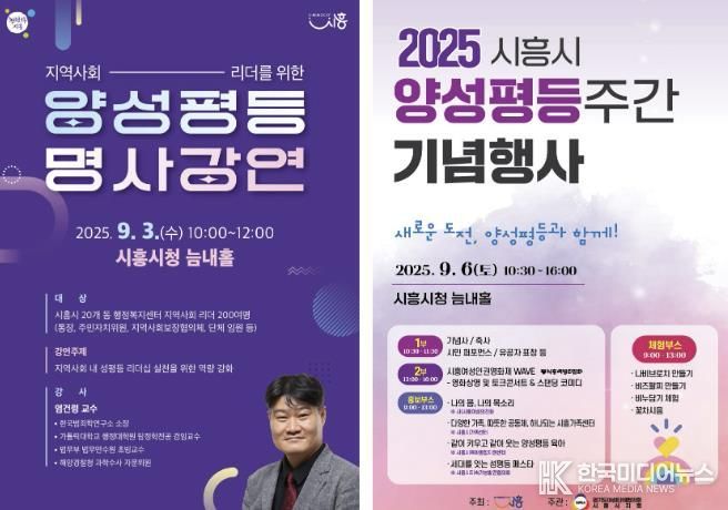 [ 한국미디어뉴스 이보영 기자 ] 시흥시는 ‘2025년 양성평등주간(9월 1일~7일)’을 맞아 시민 누구나 참여할 수 있는 다양한 프로그램을 마련했다. ‘양성평등주간’이란 정치ㆍ경제ㆍ사회 모든 영역에서 성별에 따른 차별 없는 평등한 사회를 만들고자 법으로 지정한 주간이다.