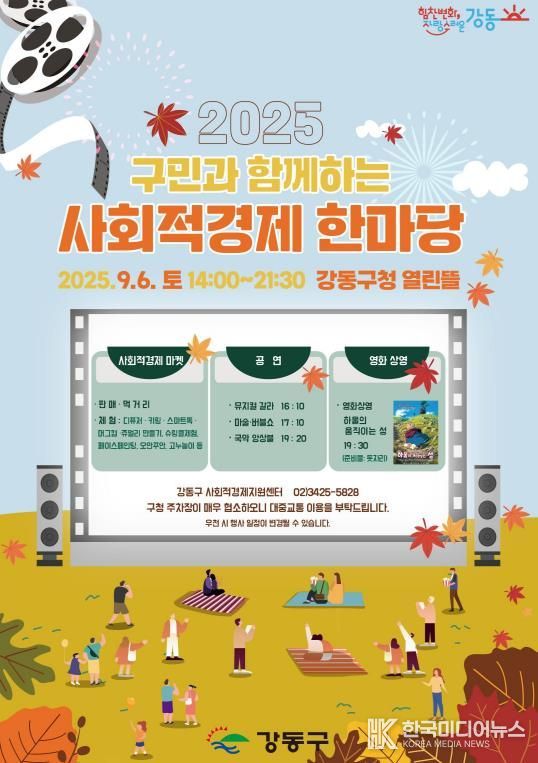 [ 한국미디어뉴스 이보영 기자 ] 강동구는 오는 9월 6일 오후 2시 구청 앞 잔디광장 열린뜰에서 ‘ 2025 사회적경제한마당’을 개최한다고 밝혔다.