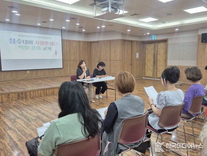 교육을 통해 자율방재단원들은 침수 발생 시 필요한 장비 사용법과 단계별 대응 요령 및 현장에서의 역할과 임무를 익혔다.