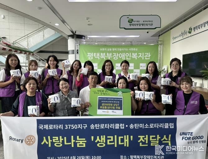 [ 한국미디어뉴스 이보영 기자 ] 평택북부장애인복지관은 8월 28일 국제로타리 3750지구 송탄 로타리클럽, 송탄미소 로타리클럽으로부터 지역사회 내 재가 장애인의 일상생활 지원을 위한 350만원 상당의 생리대를 후원받았다.