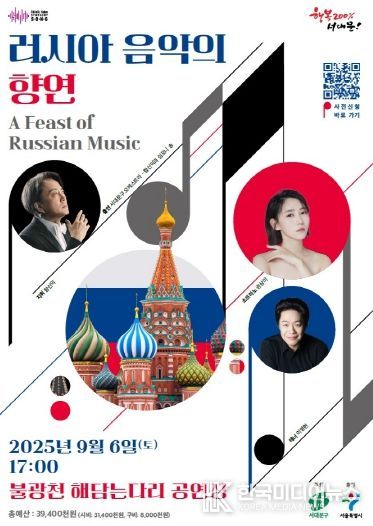 [ 한국미디어뉴스 이보영 기자 ] 서대문구가 이달 6일 토요일 오후 5시 불광천 해담는다리 공연장에서 주민들과 함께하는 ‘러시아 음악의 향연 – A Feast of Russian Music’을 개최한다.