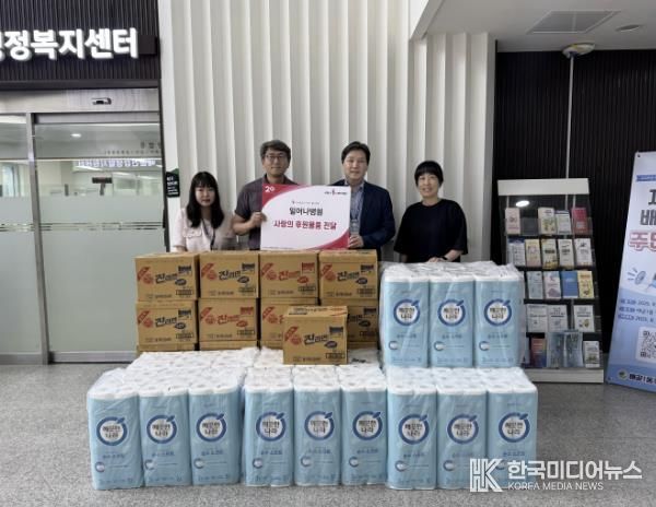 [ 한국미디어뉴스 이보영 기자 ] 시흥시 배곧1동 행정복지센터에 지난 8월 29일 일어나병원이 방문해 100만 원 상당의 두루마리 휴지와 라면을 전달하며, 지역사회에 따뜻한 마음을 나눴다.