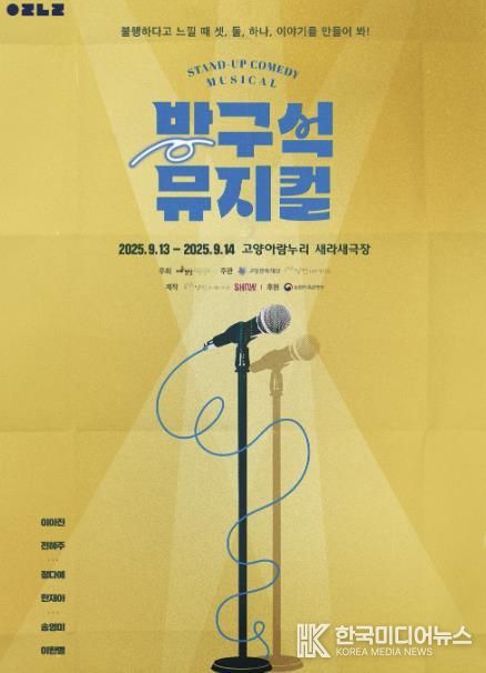 [ 한국미디어뉴스 문상수 기자 ] 고양문화재단은 소극장 기획 공연 시리즈 ‘2025 새라새 ON 시리즈’의 첫 번째 작품으로, 대학로에서 큰 사랑을 받았던 스탠드 업 코미디 뮤지컬 '방구석 뮤지컬'을 오는 9월 13일과 14일 양일간 선보인다.