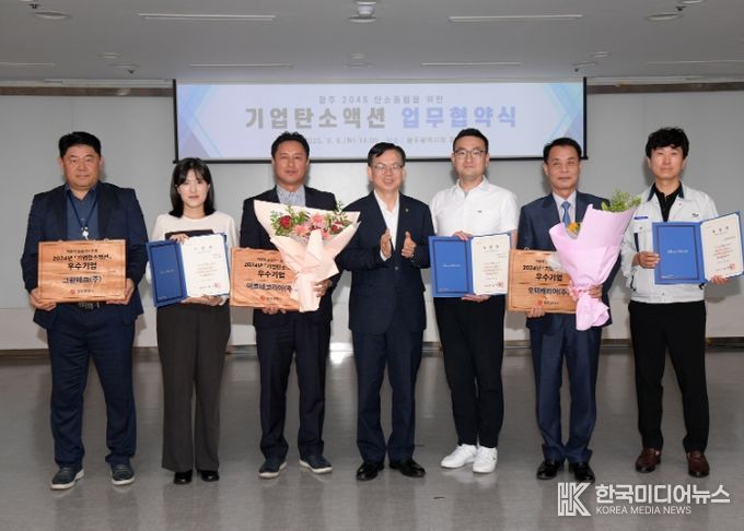한편, 광주시는 이날 협약식에서 ‘2024년 기업탄소액션 우수 참여기업’으로 선정된 ▲그린테크㈜ ▲오텍캐리어㈜ ▲아르네코리아㈜ 등 3개 기업에 대해 광주광역시장 표창과 현판을 수여했다.