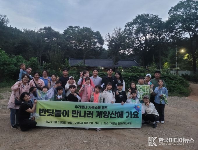 [ 한국미디어뉴스 황영수 기자 ] 인천 계양구 계양1동 주민자치회(회장 성영환)는 지난 9월 5일 계양산 일원에서 ‘우리동네 가족소통캠프 반딧불이 체험 프로그램’을 운영했다고 밝혔다.