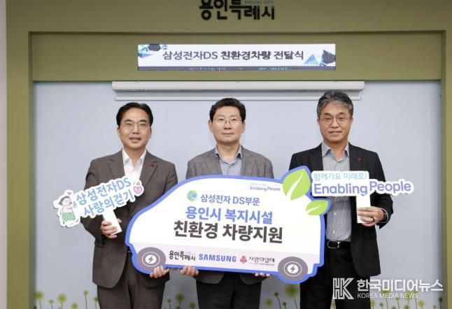 [ 한국미디어뉴스 이원영 기자 ] 용인특례시는 9일 오후 시청 하늘광장에서 삼성전자 DS부문과 경기사회복지공동모금회와 함께 ‘친환경 차량 지원사업 전달식’을 개최했다고 10일 밝혔다.