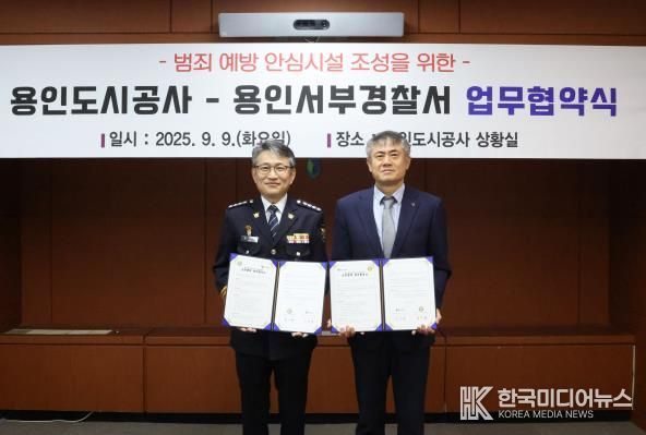 [ 한국미디어뉴스 이원영 기자 ] 용인도시공사는 9일 용인서부경찰서와 범죄예방 안심시설 조성을 위한 상호협력 업무협약을 체결했다고 밝혔다.
