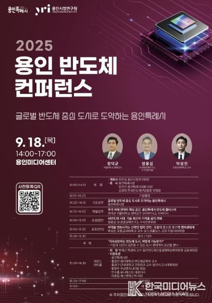 [ 한국미디어뉴스 이원영 기자 ] 용인특례시는 재단법인 용인시정연구원과 함께 18일 오후 2시 용인미디어센터에서 ‘2025 용인 반도체 컨퍼런스’를 연다고 11일 밝혔다.