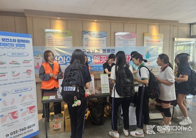 [ 한국미디어뉴스 최치남 기자 ] 인천시 중구는 지난 10일 아침 신흥여자중학교에서 등교 시간에 맞춰 ‘구강건강 캠페인’을 열고, 점심 식사 후 양치 습관을 실천할 수 있도록 격려하는 활동을 펼쳤다.