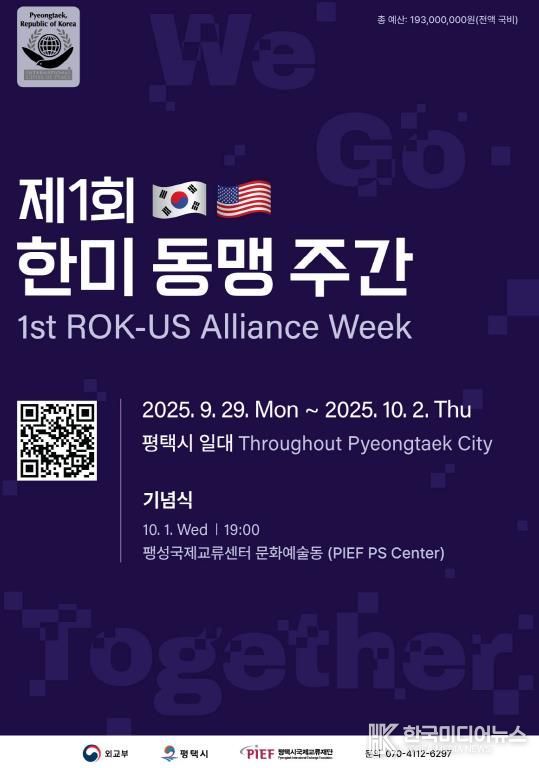 [ 한국미디어뉴스 이보영 기자 ] 외교부와 평택시가 주최하고 평택시국제교류재단이 주관하는 ‘한미 동맹 주간’이 오는 9월 29일부터 10월 2일까지 열린다.