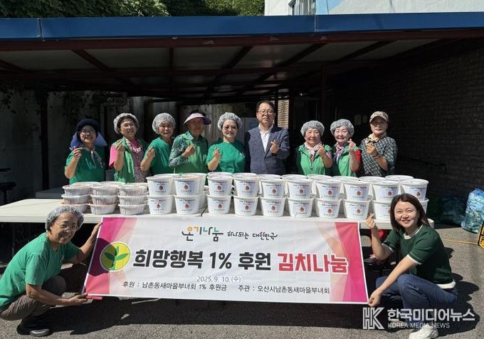 [ 한국미디어뉴스 이보영 기자 ] 오산시 남촌동 행정복지센터는 지난 10일 남촌동새마을부녀회가 주관한 ‘희망행복 1% 후원 김치 나눔 행사’를 성황리에 진행했다고 밝혔다.