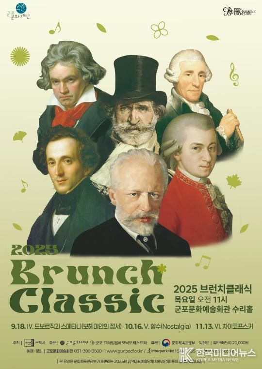 [ 한국미디어뉴스 이보영 기자 ] 군포문화재단은 오는 9월 18일 오전 11시, 군포문화예술회관 수리홀에서 ‘2025 브런치클래식’의 네 번째 공연을 개최한다.