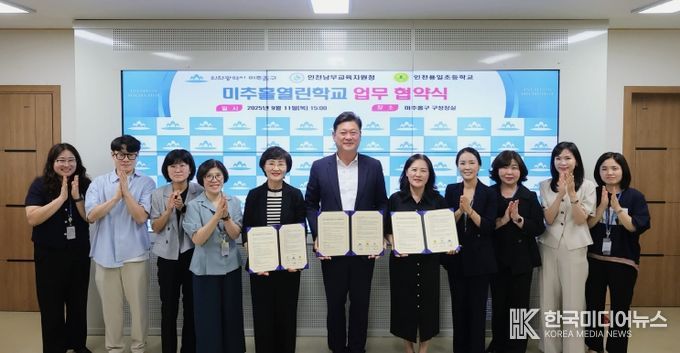 [ 한국미디어뉴스 최치남 기자 ] 인천 미추홀구는 11일 구청장실에서 인천남부교육지원청, 인천용일초등학교(교장 김수경)와 함께 용일초 다목적 강당 주민개방을 위한 ‘미추홀열린학교 업무협약’을 체결했다.
