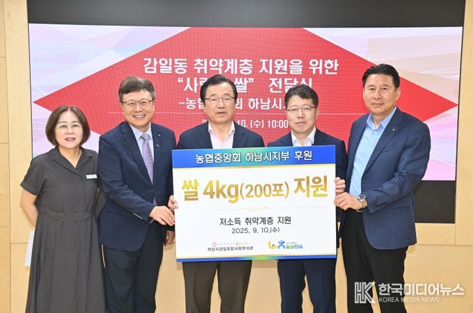 [ 한국미디어뉴스 김서안 기자 ] 농협중앙회 하남시지부(지부장 이석표)는 지난 9월 10일 하남시감일종합사회복지관(사회복지법인 휴먼복지회 운영)에 쌀 4kg, 200포(총 800kg)를 전달했다.
