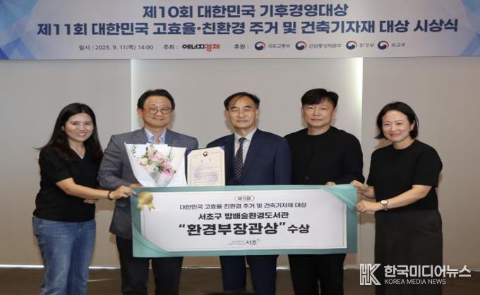 [ 한국미디어뉴스 이보영 기자 ] 서울 서초구가 11일 에너지경제신문이 주관한 ‘제11회 대한민국 고효율·친환경 주거 및 건축기자재 대상’에서 서초구립 방배숲환경도서관이 환경부장관상을 수상했다고 밝혔다.