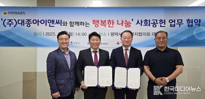 ㈜대종아이앤씨 김영석 대표는 “새롭게 뿌리내린 평택에서 나눔의 가치를 실현하는 사회공헌 업무 협약을 체결하게 되어 기쁘게 생각하며, 지역사회 어려운 이웃에 작은 힘이나마 도움이 되길 바란다”라고 전했다.