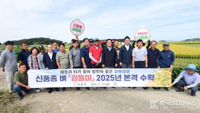 [ 한국미디어뉴스 이원희 기자 ] 강화군은 12일 교동면 삼선리에서 신품종 조생종 벼 ‘강들미’ 수확 행사를 열었다.