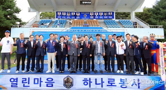 [ 한국미디어뉴스 이보영 기자 ] 대전시의회 조원휘 의장은 13일 대덕연구단지 종합운동장에서 개최된 국제라이온스협회 356-B지구 제49회 친선체육대회에 참석해 안전한 대회 진행을 기원하며, 그동안 지역사회에 보여준 국제라이온스협회 356-B지구 회원들의 헌신과 열정에 감사를 표했다.