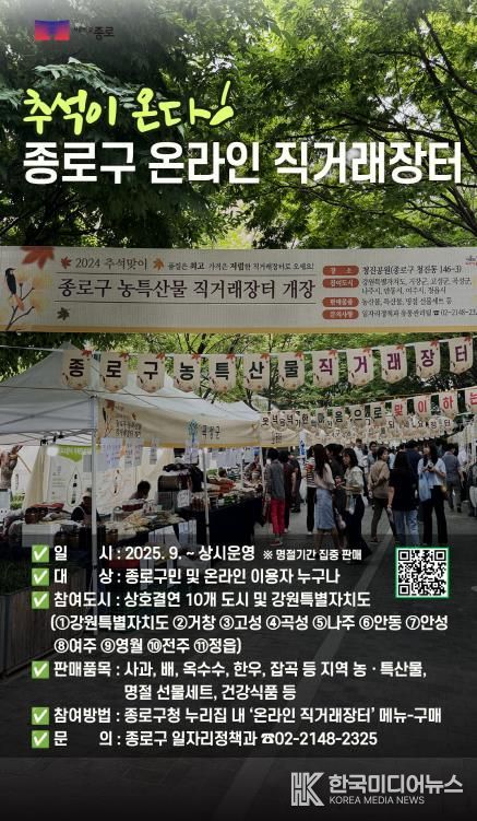 [ 한국미디어뉴스 이보영 기자 ] 종로구는 민족 최대 명절 추석을 맞아 구민들의 명절 준비 부담을 덜고, 지역 소상공인들의 매출 증대를 지원하기 위해 ‘종로사랑상품권’을 발행하고 온라인 직거래 장터를 운영한다.