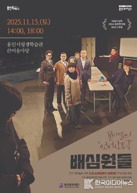 [ 한국미디어뉴스 이원영 기자 ] (재)용인문화재단은 오는 11월 15일 용인시평생학습관 큰어울마당에서 블랙코미디 연극 '배심원들'을 선보인다.