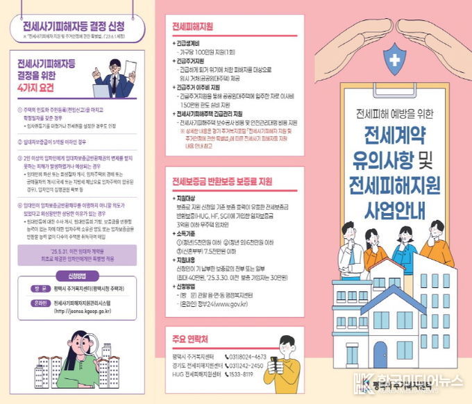 평택시 주거복지센터 관계자는 “최근 전세 사기 피해자 지원 및 주거 안정에 관한 특별법 개정 이후 적용 범위가 제한되어 전세 피해 예방이 더욱 중요해졌으며, 전세 사기 피해자가 최소화될 수 있도록 최선을 다하겠다”라고 말했다.