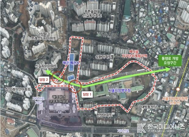 현재 신림선 병무청역 개통으로 병무청 부지는 일부 개방됐으나, 인접한 국방부 부지(해군 폐관사)는 여전히 통행이 제한돼 주민 불편이 이어지고 있다. 구는 폐관사 철거 후 임시 보행로를 마련해 불편을 최소화하고, 새로 들어설 서울지방병무청 신청사가 ‘담장이 없는 열린 청사’로 건립될 수 있도록 지속 협의할 계획이다. 또 청사 내 주민 이용 공간을 확보해 정원과 산책로, 휴게 공간 등을 조성하고, 누구나 자유롭게 이용할 수 있는 힐링 공간이 마련되도록 적극 요청할 예정이다.