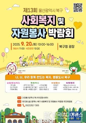 [ 한국미디어뉴스 이보영 기자 ] 울산 북구자원봉사센터는 20일 북구청 광장에서 제13회 사회복지 및 자원봉사 박람회를 연다.