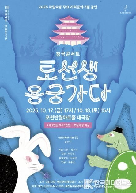 [ 한국미디어뉴스 김서안 기자 ] 포천문화관광재단은 오는 10월 17일과 18일 양일간 포천반월아트홀 대극장에서 국립창극단의 창극콘서트 ‘토선생, 용궁가다’를 선보인다.