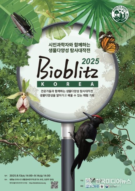 [ 한국미디어뉴스 이원영 기자 ] 산림청 국립수목원은 9월 13일부터 14일까지 24시간 동안 광릉숲 유네스코 생물권보전지역에서 '바이오블리츠 코리아 2025'를 성황리에 개최했다고 밝혔다.