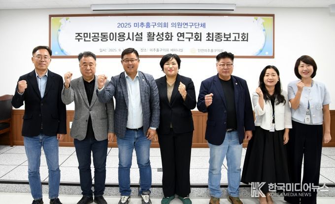 [ 한국미디어뉴스 최치남 기자 ] 인천광역시 미추홀구의회 의원연구단체 '주민공동이용시설 활성화 연구회'(대표의원 이선용, 연구의원 이관호·정락재)는 2025년 9월 16일 미추홀구의회 세미나실에서 연구용역 최종보고회를 개최했다.