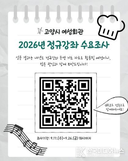 [ 한국미디어뉴스 문상수 기자 ] 고양특례시 여성회관에서 내년도 정규강좌 프로그램 개설을 위한 시민 대상 희망 강좌 설문조사를 실시한다고 17일 밝혔다.