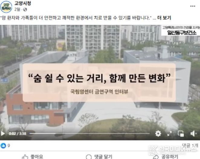 9월 30일까지 진행되는 이번 홍보는 IPTV, 고양시 공식 블로그 및 페이스북 등 다양한 매체를 통해 이루어지고 있으며, 영상에는 암환자, 자원봉사자 등이 참여해 금연구역 지정에 대한 긍정적인 반응을 전했다.